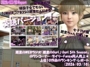 3DCG d_743929【最新フル漫画free】【▲20】英語★廻里の自撮りWEBラジオ『廻里のGuriGuri(グリグリ)5thシーズン』のワンコーナー:デイリーFanza同人売上★上位10作品のランキング・レポート[2026/03/10]//一ノ瀬廻里//